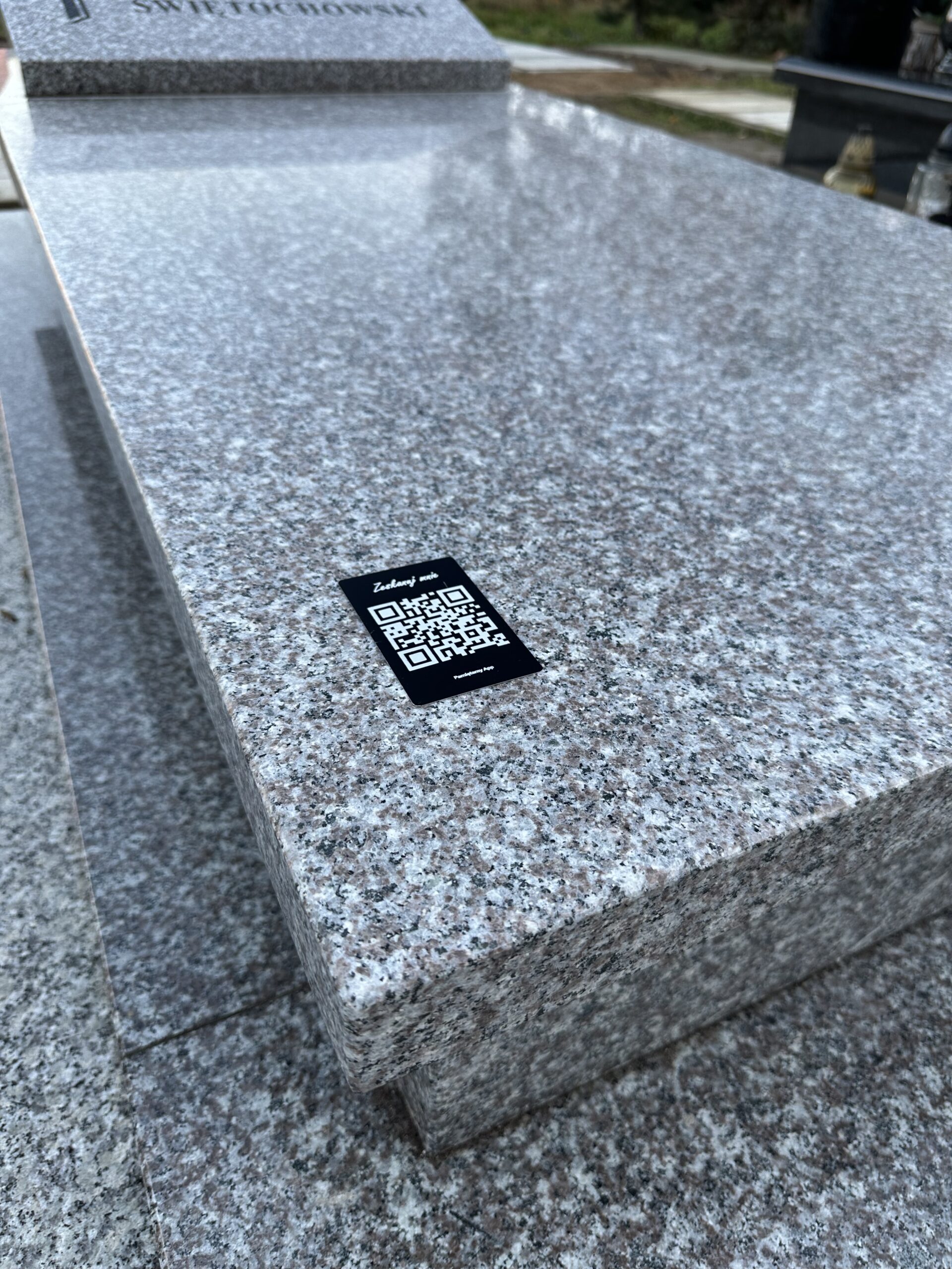 Skany QR prowadzą do profilu wspomnień (z telefonu, w kilka sekund).